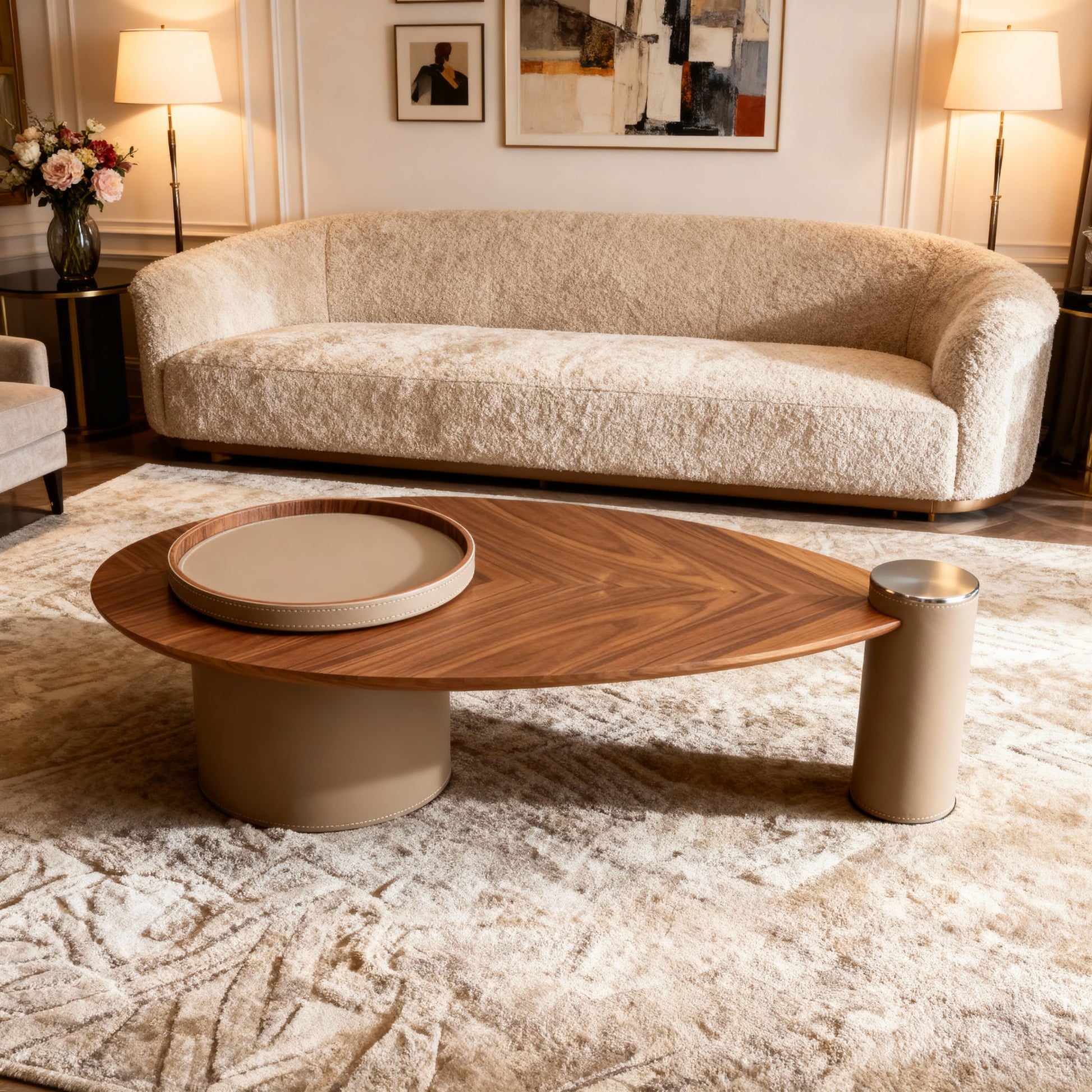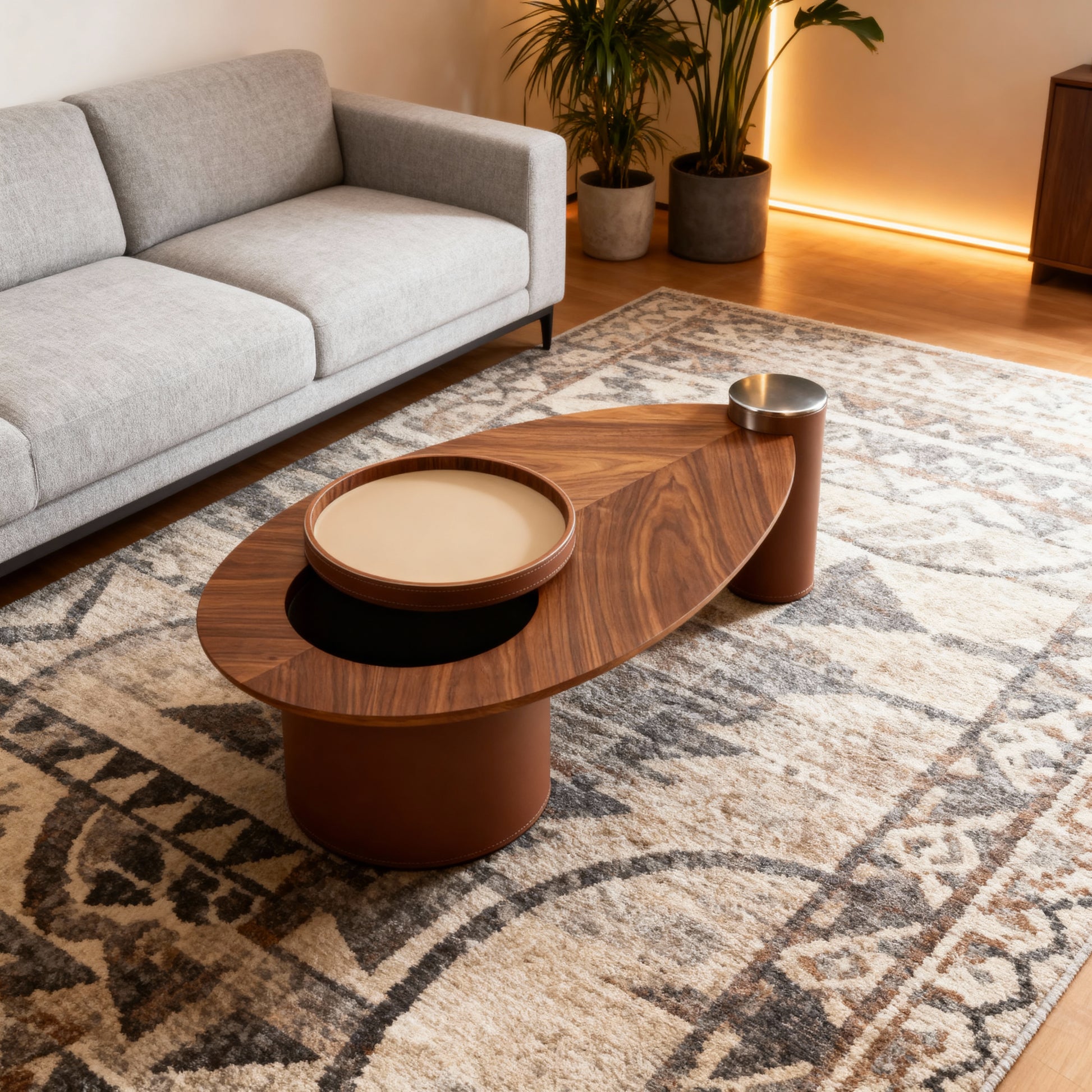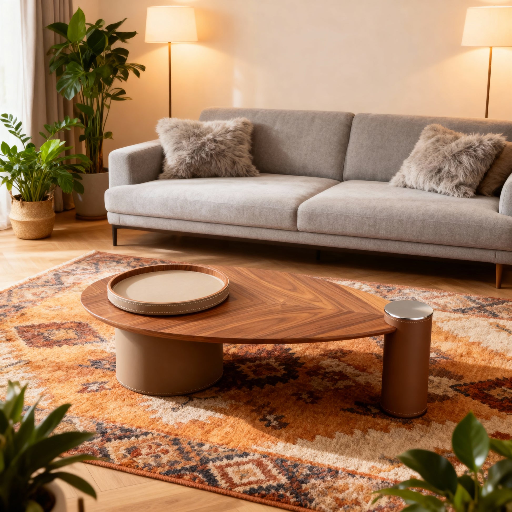Aporta calidez y estilo natural a tu sala con esta elegante mesa de centro, perfecta para ambientes rústicos o decoraciones con toques orgánicos. Su tablero en color madera presenta un delicado borde con diseño de hoja tallada que añade un sutil detalle decorativo sin perder funcionalidad.