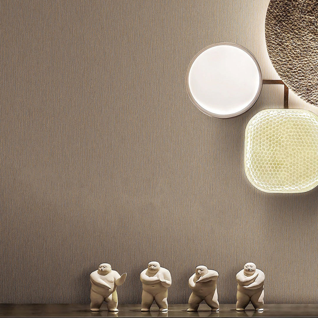 El color es un café oscuro. Este tipo de papel tapiz, con su color sólido pero con textura, es una excelente opción para agregar interés visual sin abrumar el espacio.