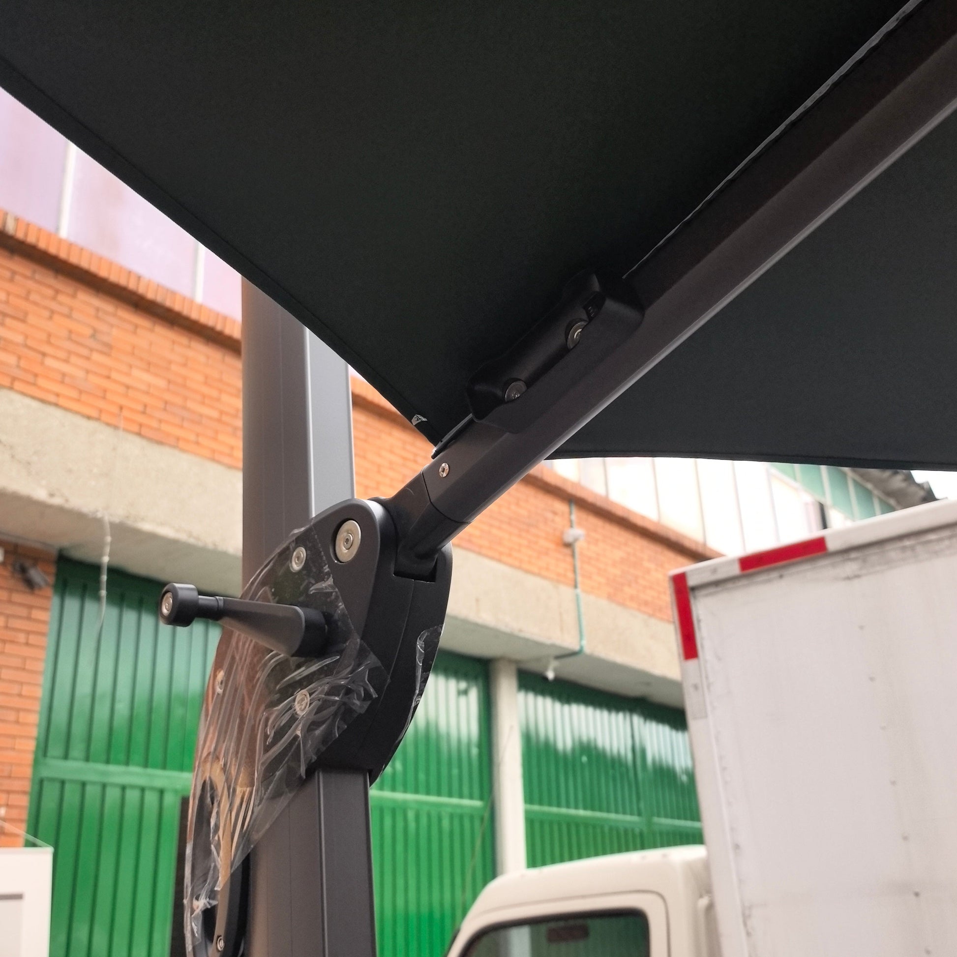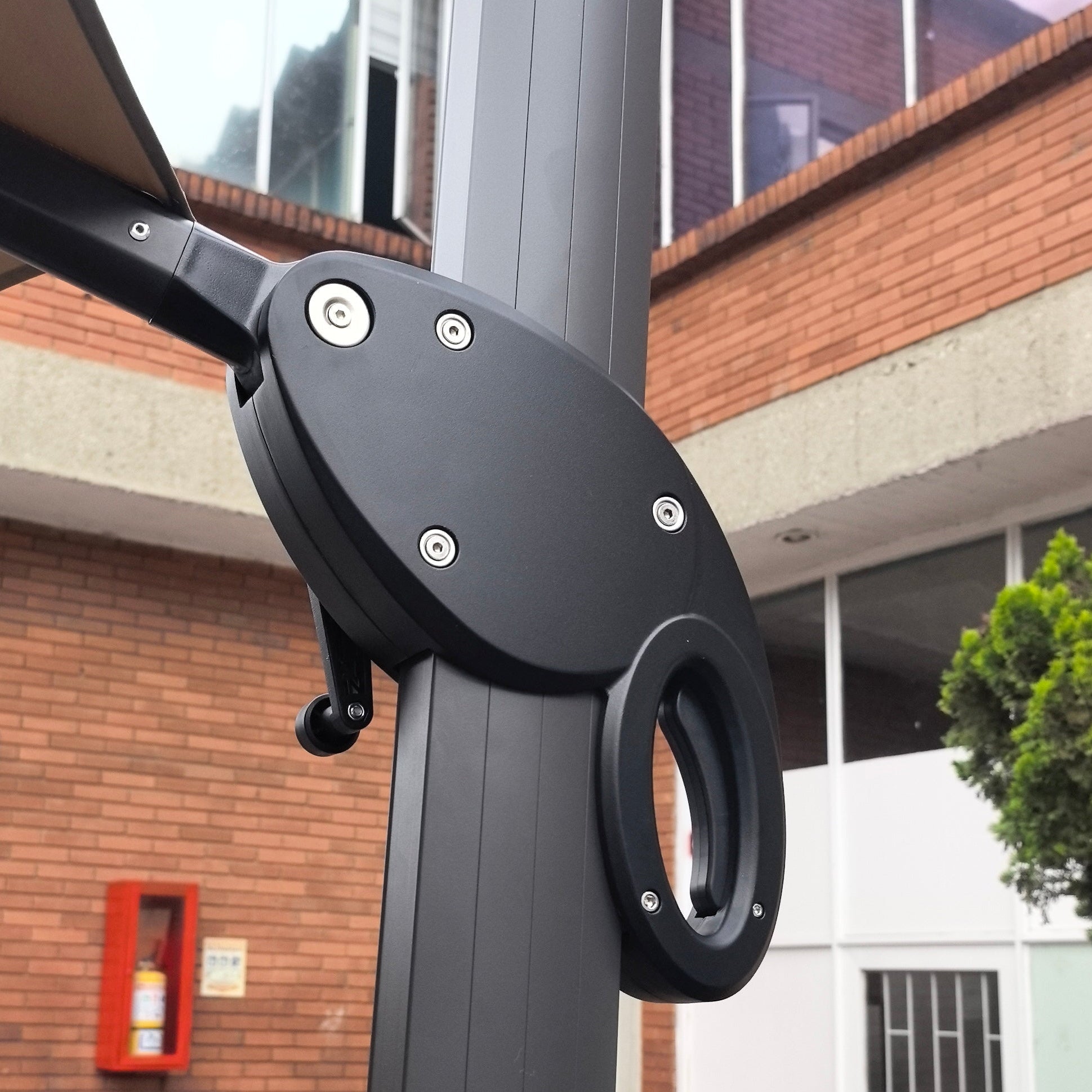 Ajuste Personalizado: Gracias a su sistema de manivela regulable en 4 niveles, puede controlar la inclinación para bloquear el sol en cualquier ángulo. Además, su pedal giratorio de 360° permite orientar la sombra sin necesidad de mover la base.