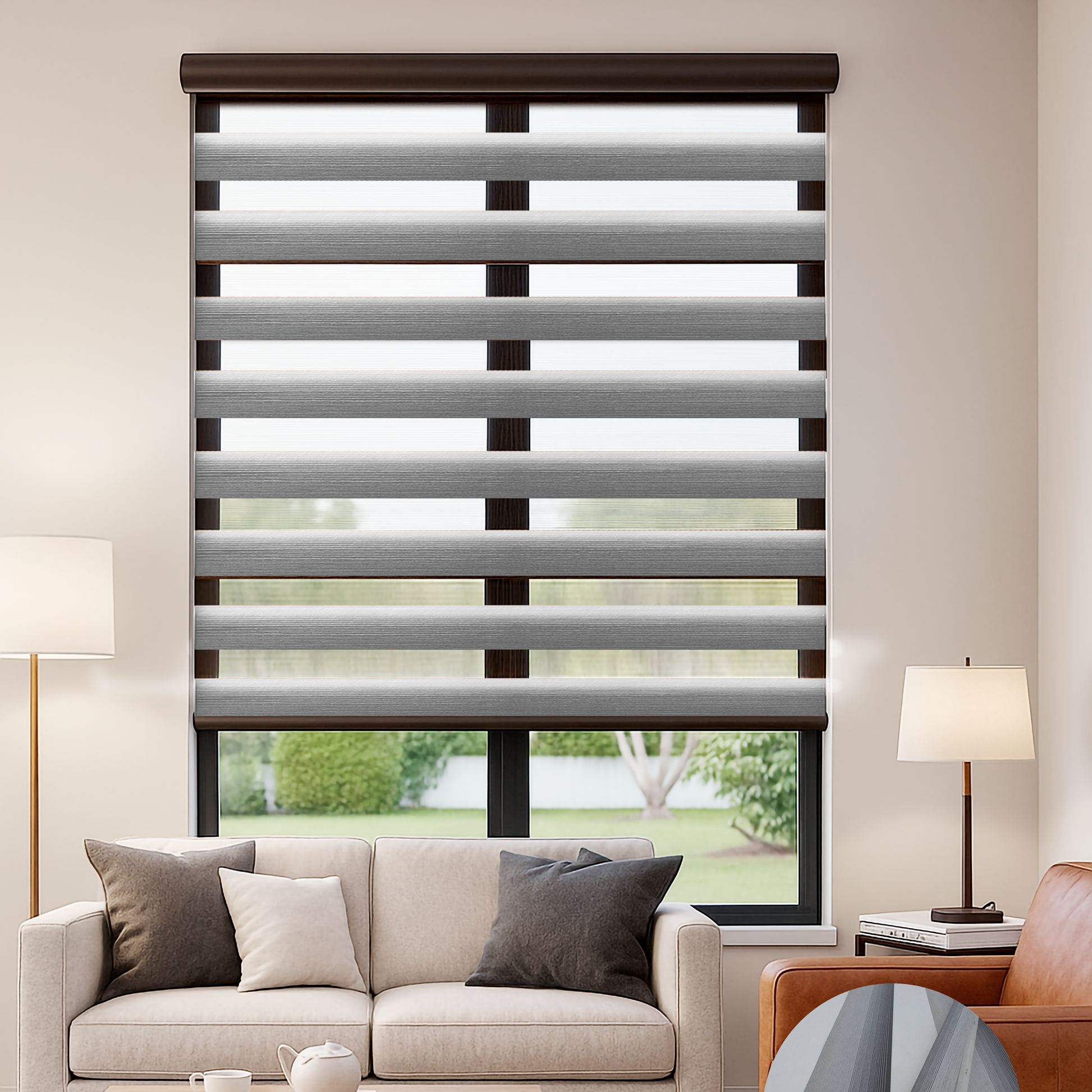 Nuestra cortina/persiana Doble Función permite deslizar y traslapar sus franjas para que puedas graduar el nivel de iluminación y privacidad que quieres en el ambiente. La tela Brick otorga una protección a tus muebles de los rayos UV y esta diseñada para darle un toque elegante, moderno y personal. Disponibles en Bogotá, con envíos a toda Colombia.