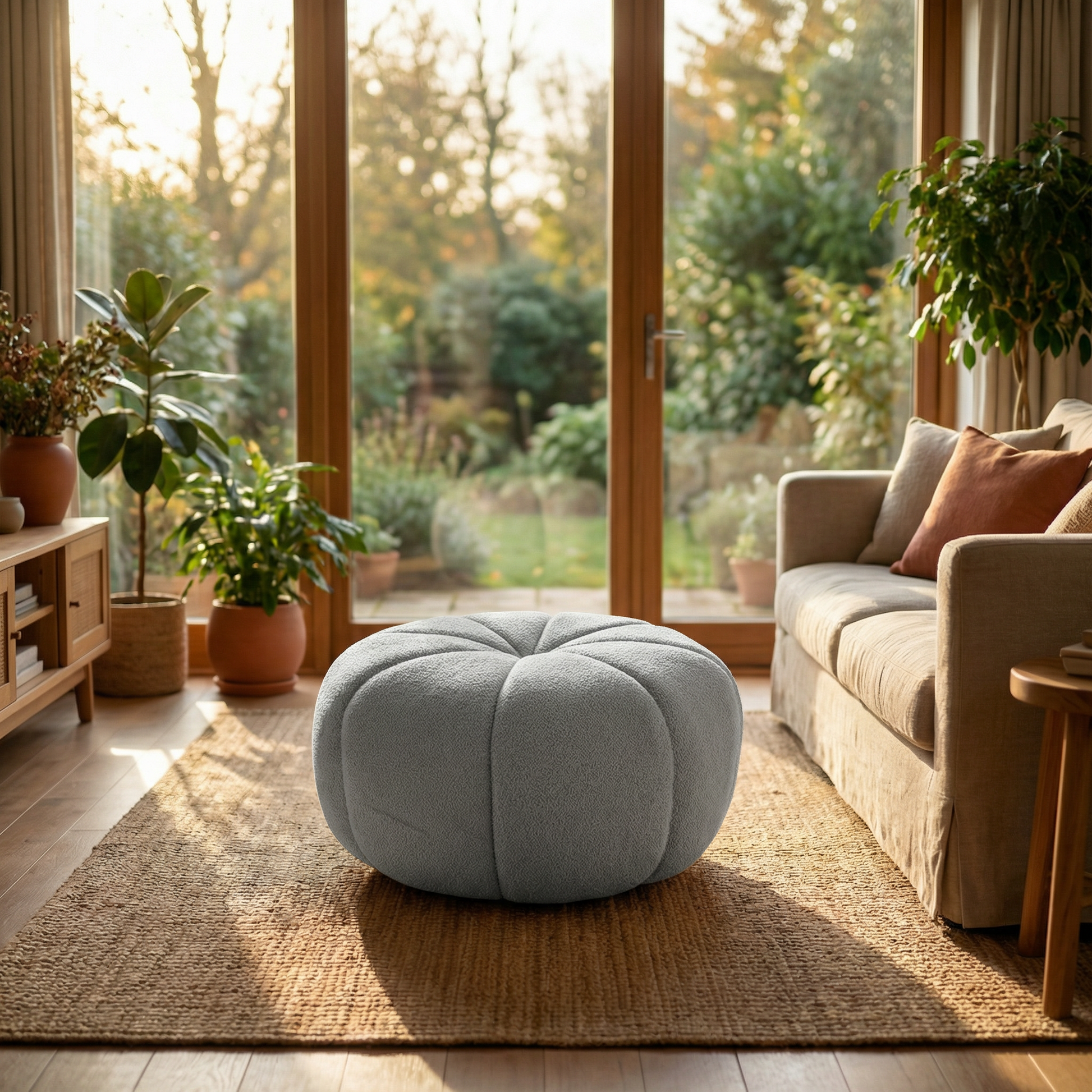 Ideal para usarse como asiento extra, reposapiés o incluso como una mesa auxiliar con una bandeja decorativa. Un tono profundo y atemporal que añade un toque de modernidad y combina fácilmente con diversas paletas de colores.