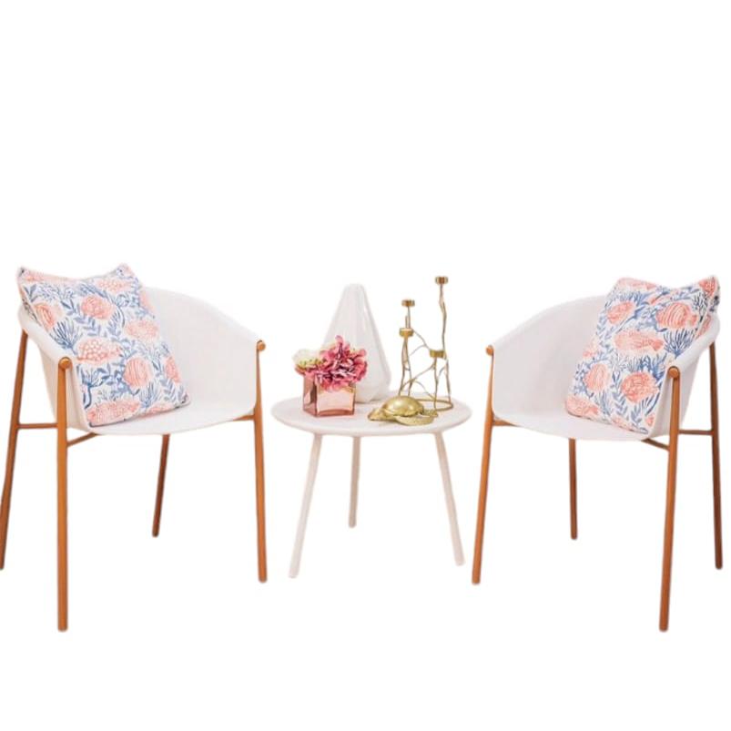 La mesa de centro a juego, también fabricada en PVC, añade un toque funcional y estilizado. Su superficie amplia es ideal para colocar bebidas, libros o decoraciones, y su diseño minimalista se complementa perfectamente con las poltronas. Resistente a los rayos UV y a la humedad, esta mesa garantiza longevidad y poco mantenimiento.