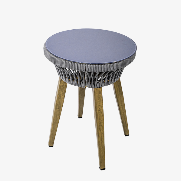 La mesa redonda proporciona un espacio práctico para colocar bebidas, aperitivos o decoraciones, completando el ambiente acogedor y funcional del set.