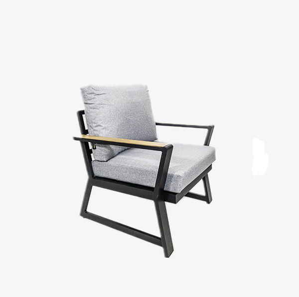 Tanto el sofá de 2 puestos como las poltronas tienen una estructura en aluminio con un elegante acabado en color negro, que aporta sofisticación y modernidad al conjunto.