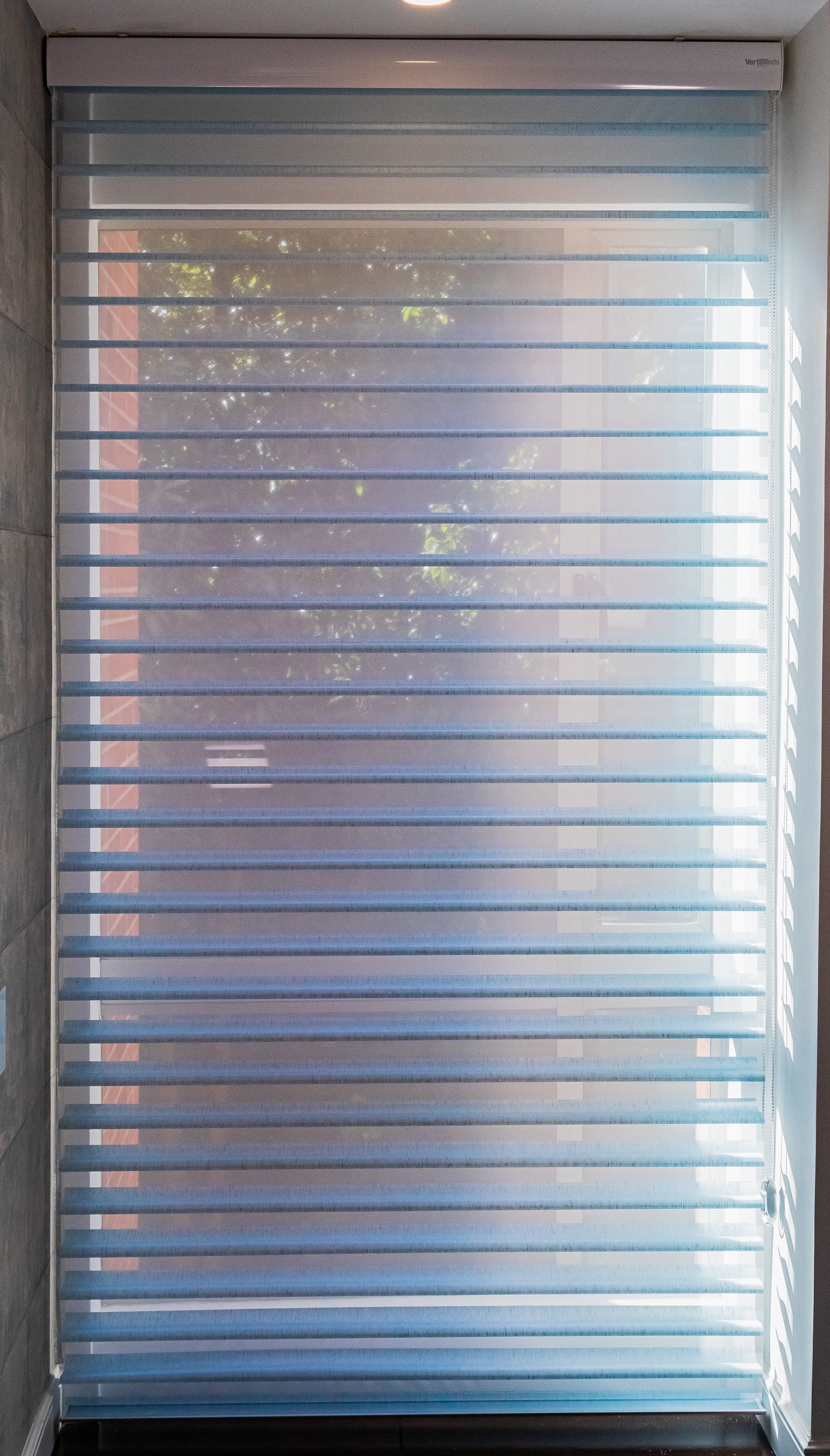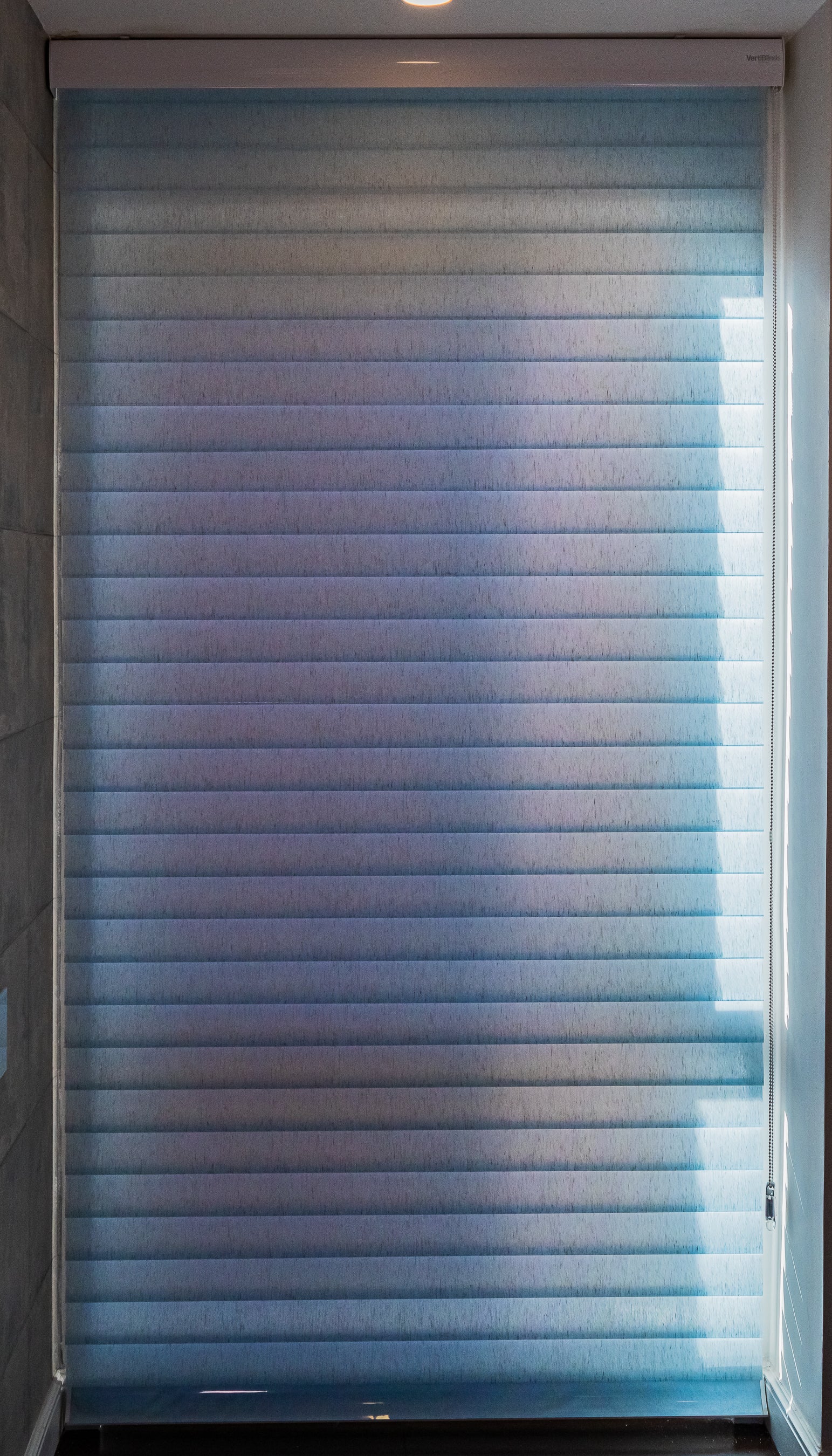 Nuestra cortina shangri-la permite deslizar y traslapar sus franjas para que puedas graduar el nivel de iluminación y privacidad que quieres en el ambiente. La tela screen otorga una protección a tus muebles de los rayos UV y esta diseñada para darle un toque elegante y personalizado.