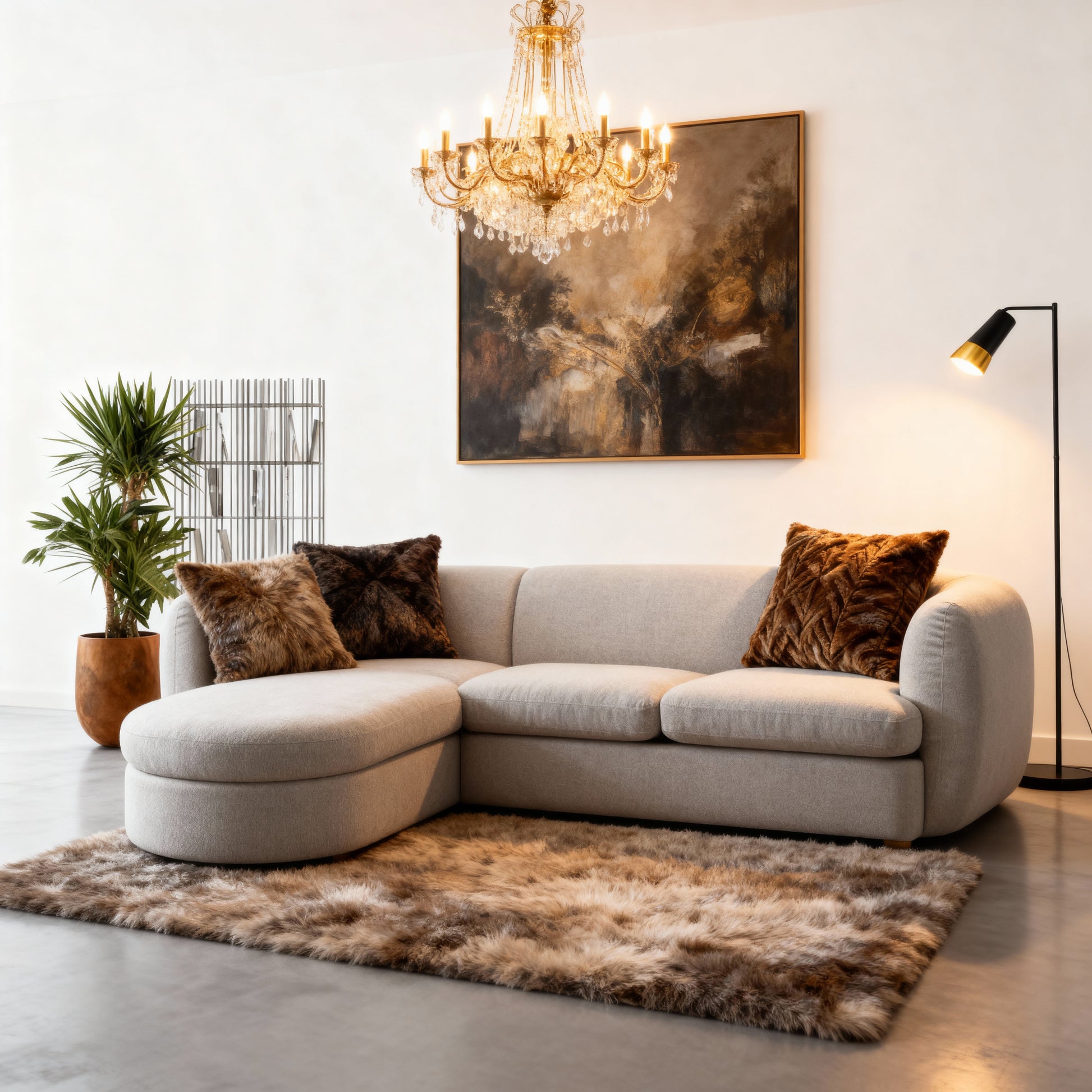 Chaise Lounge Integrado: La extensión tipo chaise lounge (o pouf/diván) ofrece un espacio de relajación premium, ideal para estirarse y disfrutar de un momento de tranquilidad.